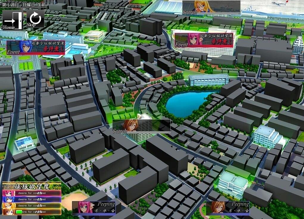 在游戏中,玩家操作男主在地图移动画面上追踪目标并接触,进行エロ。