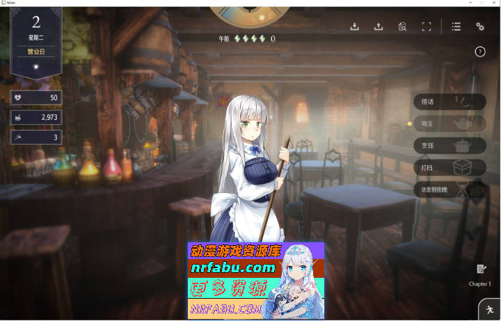 您能在酒馆的店内或寝室和女主角进行互动与交流。